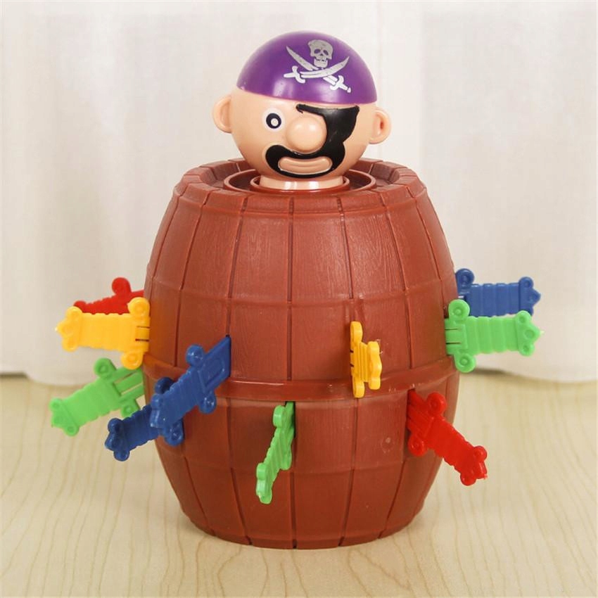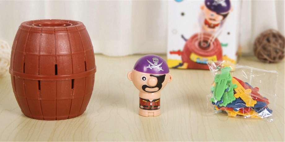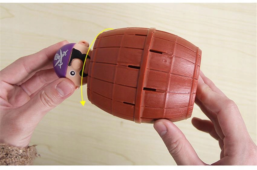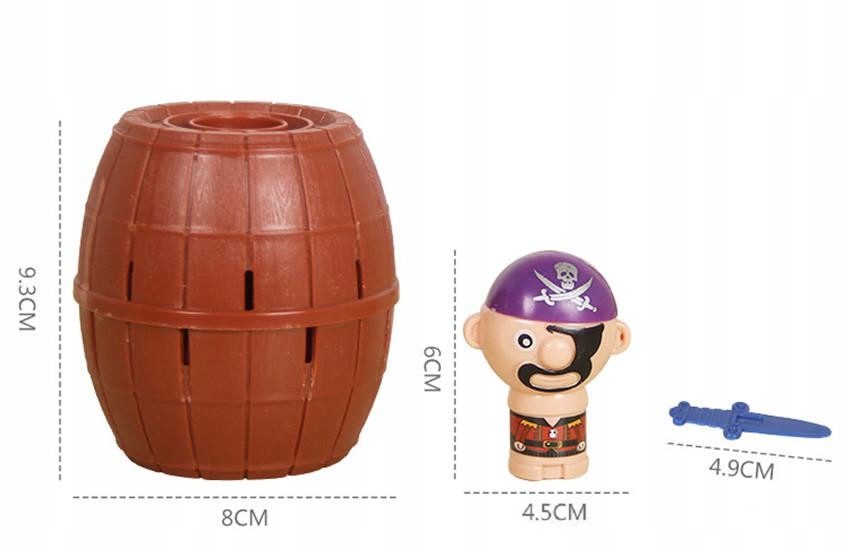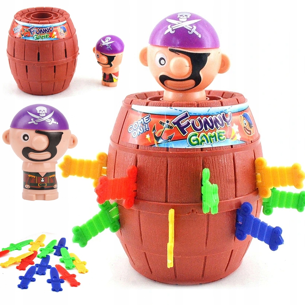 Na tego, kto się zagapi i narobi rumoru podczas wkładania miecza, czeka srogi gniew brodatego pirata. Kiedy jego głowa nagle wyskoczy ze środka beczki, gracz przegrywa i traci szanse na dostęp do skarbu. Jednak, zamiast ze strachu brać nogi za pas, będziecie śmiać się do rozpuku i na nowo rozpoczniecie emocjonującą zabawę.