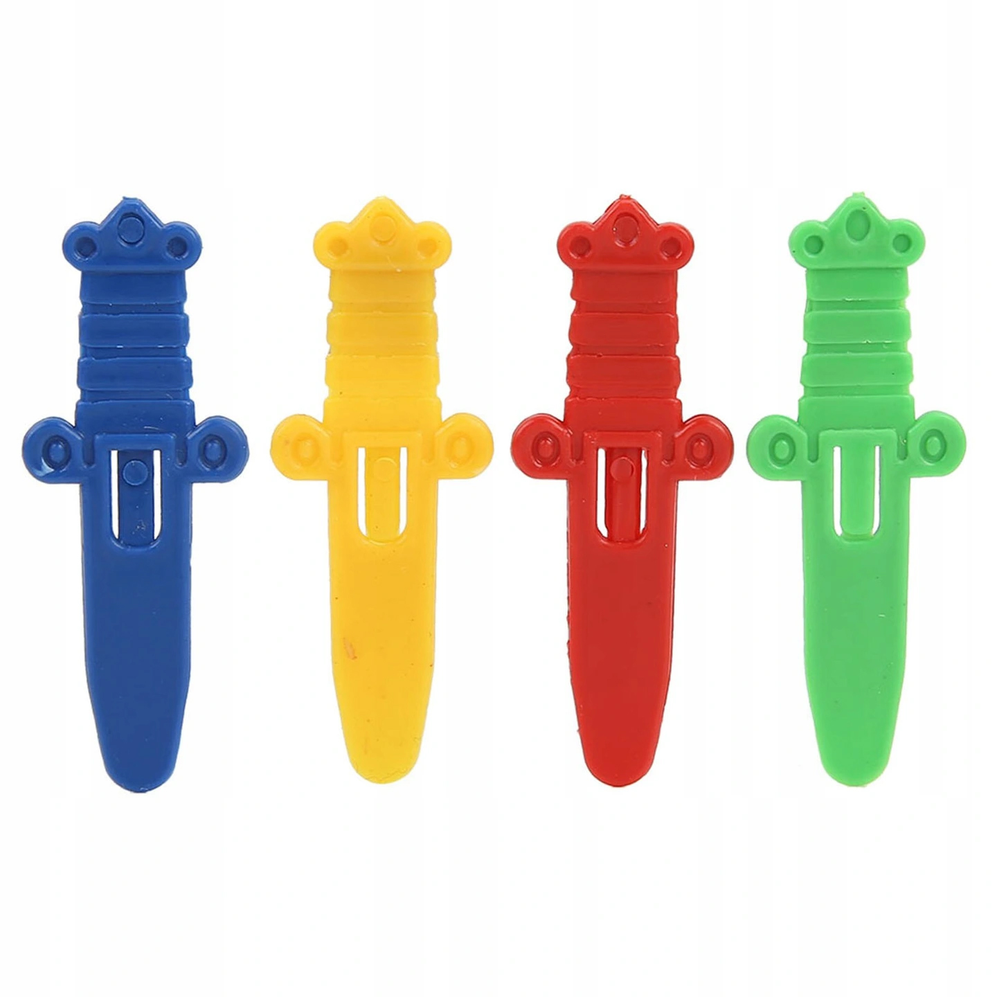 Czas przypuścić atak na piracki statek i zdobyć skarb. Zachowując ostrożność wprawnego wilka morskiego, każdy z graczy kolejno wkłada w szczeliny w beczce po jednym mieczu. Możecie umówić się, że każdy z graczy wkłada miecze w określonym kolorze: zielonym, żółtym, czerwonym i niebieskim.