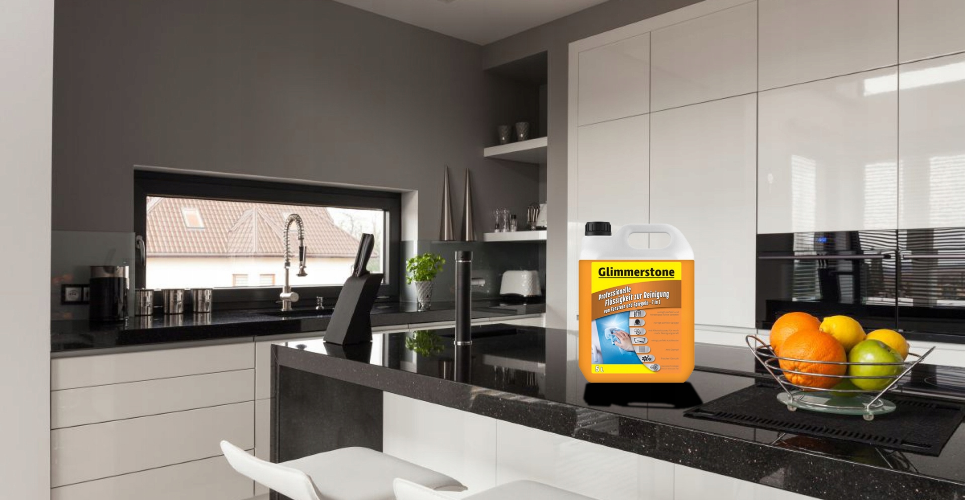 Płyn do mycia okien GLIMMERSTONE to najwyższa jakość w rodzinie płynów do mycia szyb. Sprawia, że mycie okien, luster, szyb samochodowych i innych powierzchni szklanych staje się przyjemnością. Pozwala szybko i bez wysiłku pozbyć się osiadłego brudu.