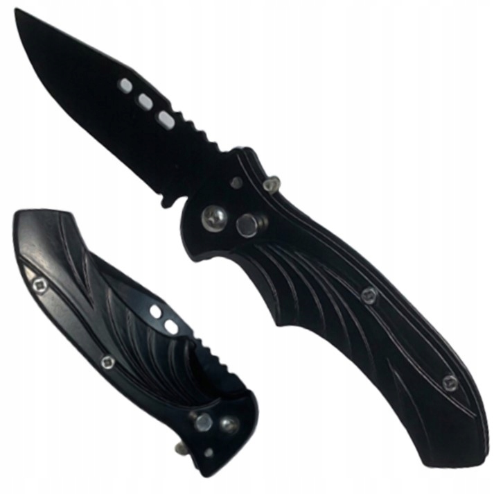 NÓŻ SKŁADANY SPRĘŻYNOWY SCYZORYK TAKTYCZNY AUTOMAT Nóż został wykonany z wysokiej jakości stali zapewnia mu to bardzo dużą wytrzymałość. Naostrzone laserowo ostrze jest bardzo ostre oraz zbudowane w taki sposób by zapewnić największą precyzję cięcia. Dzię